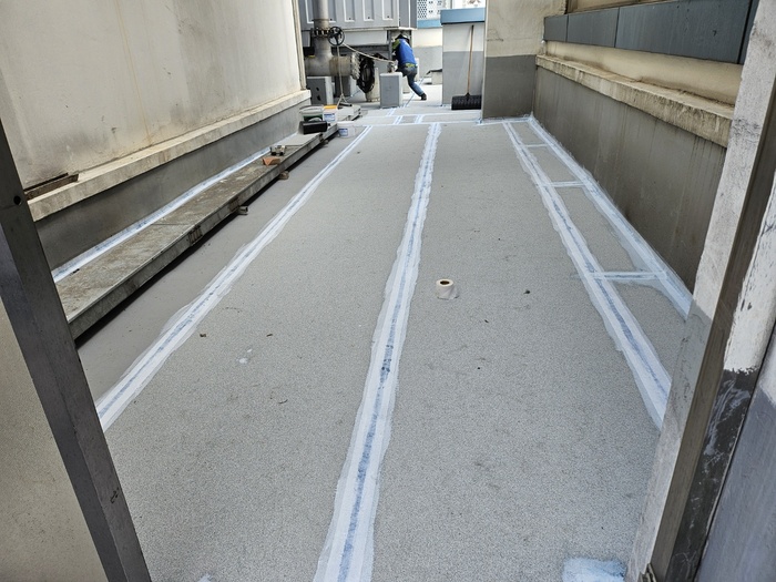 마감재까지 1차, 2차 도포해주면 복합방수 (시트+도막재) 시공은 완료되었습니다.