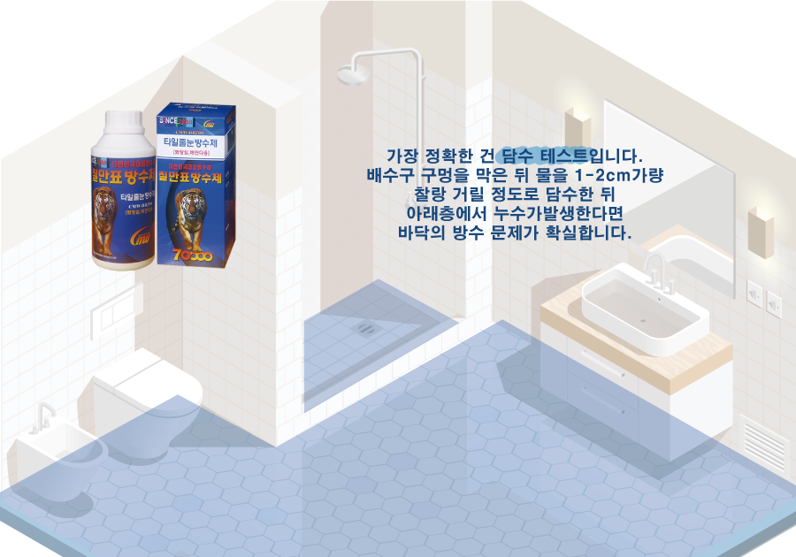 이 경우 타일줄눈방수제를 줄눈에 1회만 칠해주시면 방수가 가능합니다.